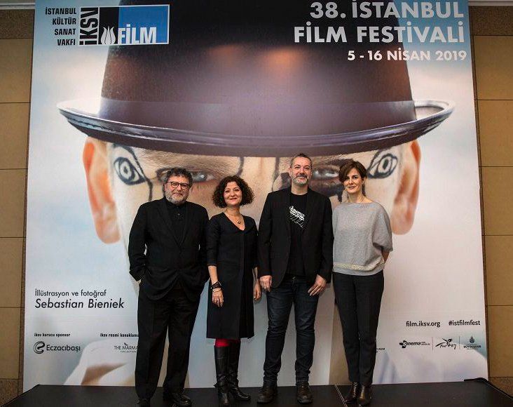 Managing-Team of the 38th Istanbul International Film Festival in front of "Double Bieniek-Face No. 1" shooted by Sebastian Bieniek (B1EN1EK) in march 2019.