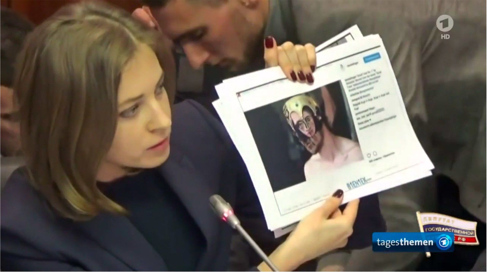 In late november 2017 before the Russian premiere of the Matilda (2017) movie, which accused a scandal in Russia, the member of the russian parlament Natalja Wladimirowna Poklonskaja have shown at a Duma session Sebastian Bieniek's photographs of Lars Eidinger