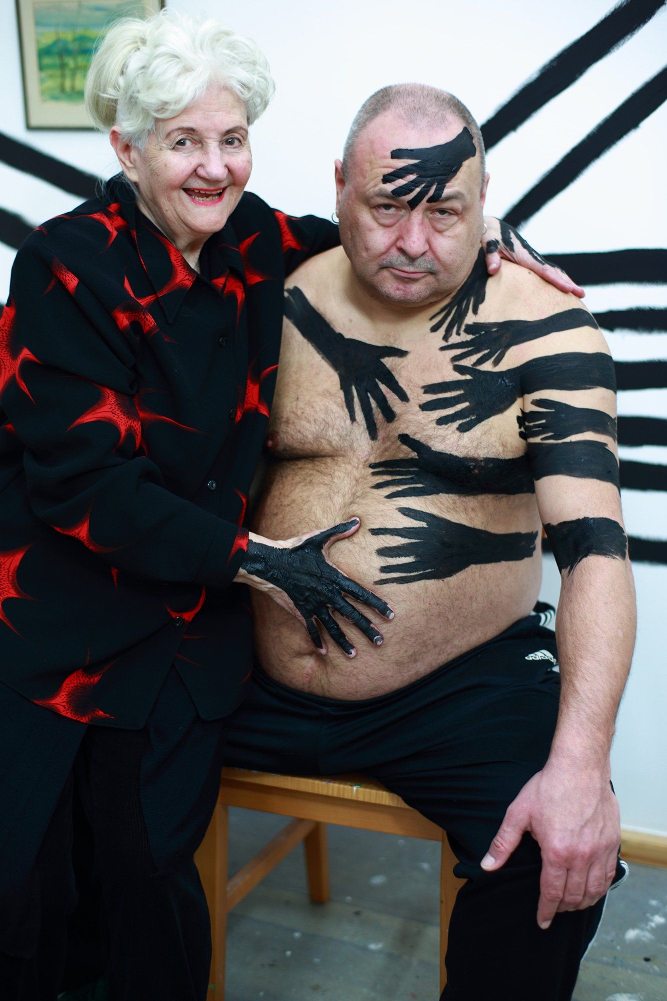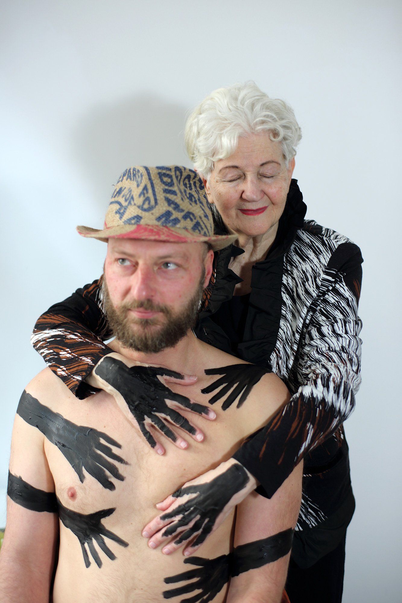 The characteristic part of his "Bieniekhand" style are white or black hands which surrender, cover or embrace usually a body but also houses and other objects.